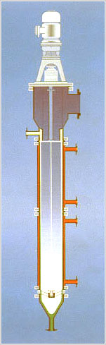 它由一个或多个带夹套加热的圆筒体及筒内旋转的刮膜器组成。刮膜器将进料连续地在加热面刮成厚薄均匀的液膜并向下移动;在此过程中,低沸点的组份被蒸发,而残留物从蒸发器底部排出。