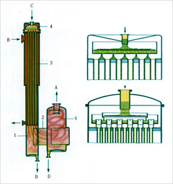 除了管材尺寸以外,选择合适的液体分布装置对获得完全润湿非常重要,下图例举的是两种液体分布装置。由于加热管中液体量低且流速快, 产品停留时间颇为短暂,因此,可以极其温和地蒸发热敏性物料。 |